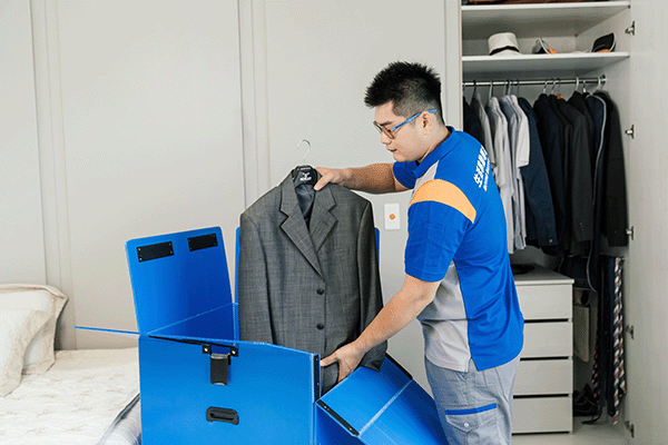 - 免折疊還原:提供專用掛衣箱服務,直接將衣物連同衣架由原衣櫃移至箱內。